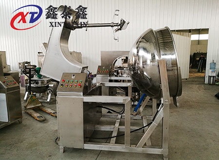 火鍋底料炒鍋的整體結構主要由全不銹鋼機架、低消耗燃燒系統(tǒng)、自動攪拌炒制系統(tǒng)、電動傾倒系統(tǒng)、加厚球墨合金鑄鐵模鑄成型鍋體 以及耐熱保溫系統(tǒng)裝置等組成